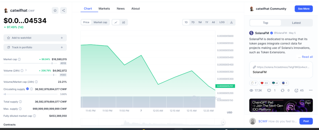 CatCoin is another meme coin. Nowadays, this coin is trending, and crypto experts are saying that this coin will give 1000× profit to its investors 🚀 CatCoin meme coin price is $0.000000005. The market cap of CatCoin is $29M, with a 24-hour trading volume of $9M 🚀